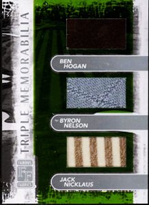 as well as many other subsets. The only Ben Hogan card found in this set is the Vintage Paper Cuts VP-BH. However, there could be up to 6 more Hogan redemption cards: a silver and gold for a single, a double, and a triple memorabilia with Hogan, Hogan/Stewart, Hogan/Stewart/Nelson. |
